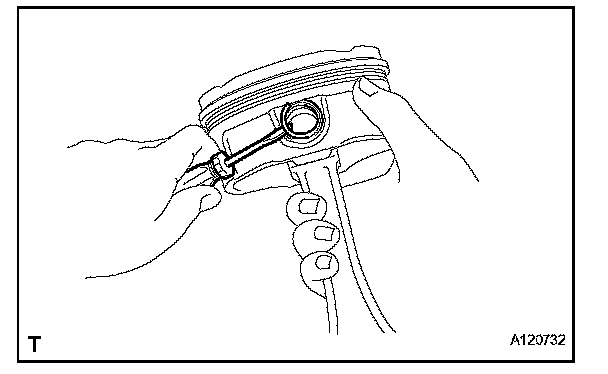 HINT: Be sure that the end gap of the snap ring is not aligned with the pin hole cutout portion of the piston.