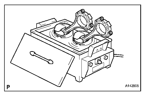(a) Remove the connecting rod bearings from the connecting rods and connecting rod caps.