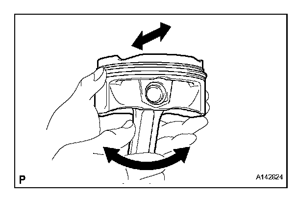 (e) Move the connecting rod back and forth on the piston pin. Check the fitting condition.