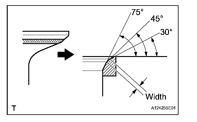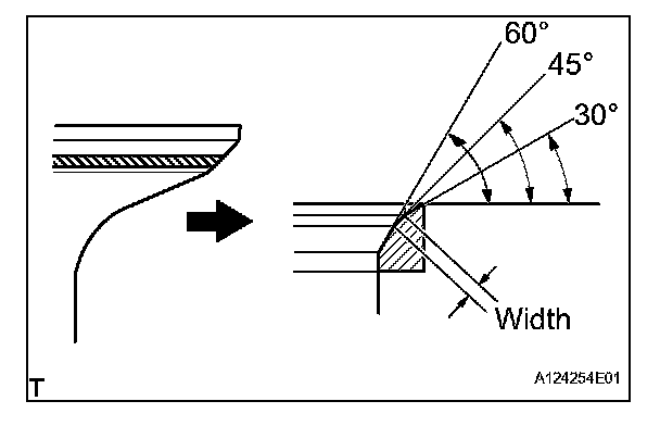 (a) Using a 45° cutter, resurface the valve seat so that the valve seat width is more than the specification.