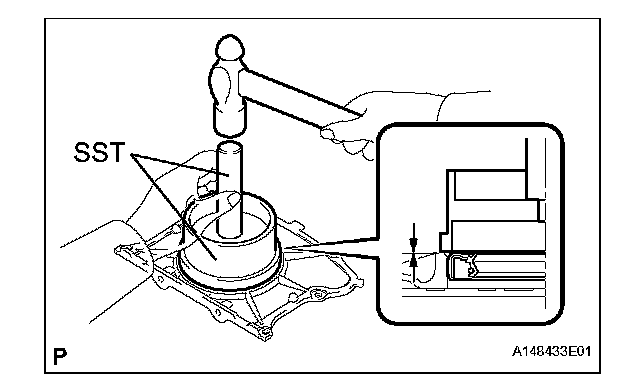 (c) Using SST, tap in a new oil seal until its surface is flush with the oil seal retainer edge.
