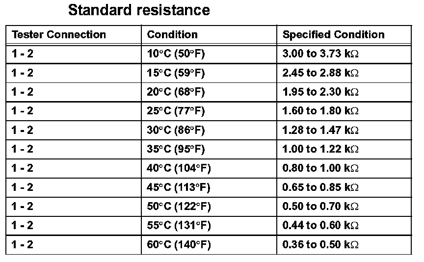 - When measuring the resistance, the sensor temperature must be the same as the ambient temperature.