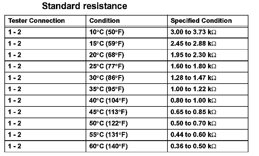 - When measuring the resistance, the sensor temperature must be the same as the ambient temperature.
