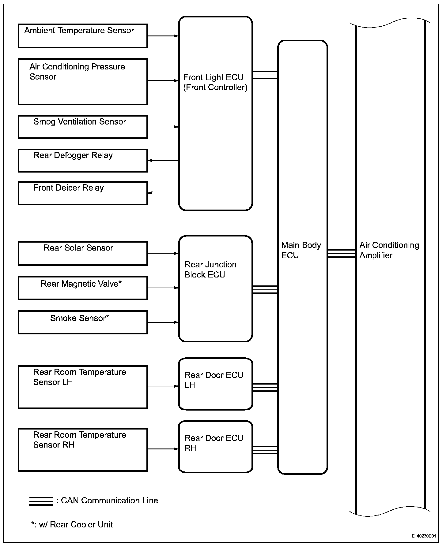 - For the long body VIP specification, an infrared ray sensor unit is installed. The infrared ray sensor unit detects the body temperature of the rear seat passenger, compares the body temperature to a specified setting, and attempts to decrease the temperature difference.