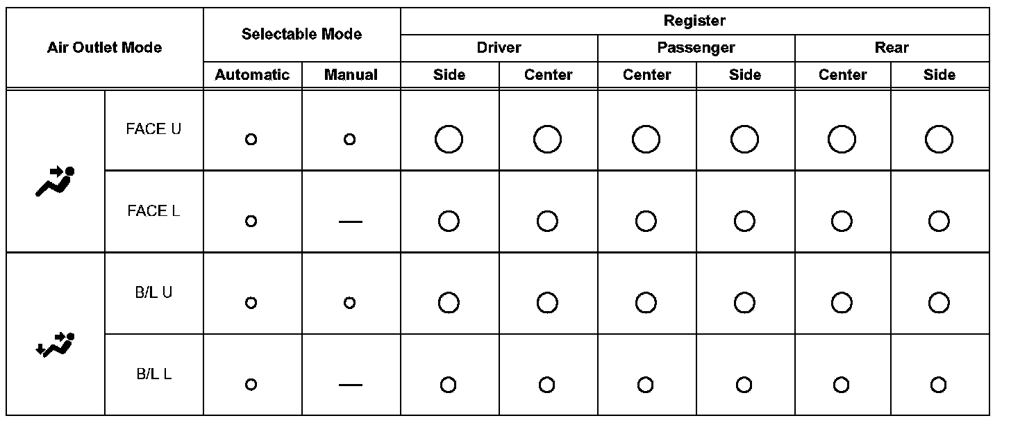 - B/L L: B/L mode in which large amount of air flows from footwells
