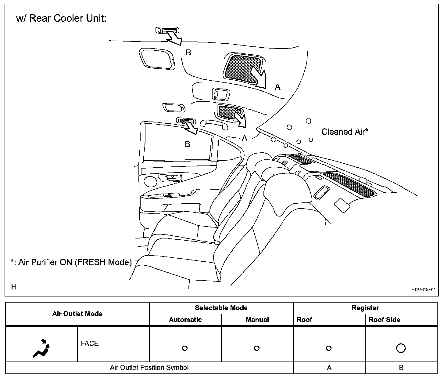 - For vehicles with the rear cooler, there are roof and roof side air ducts, and independent temperature and airflow mode adjustments are automatically performed.