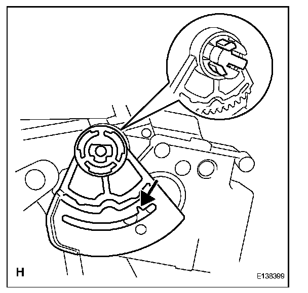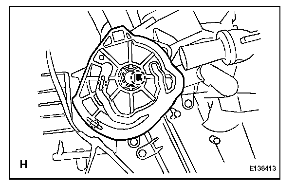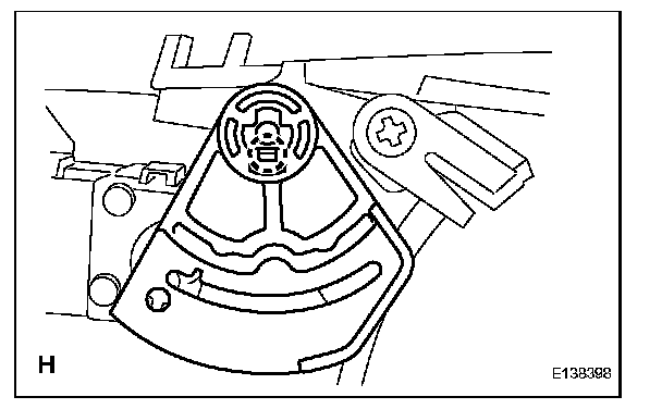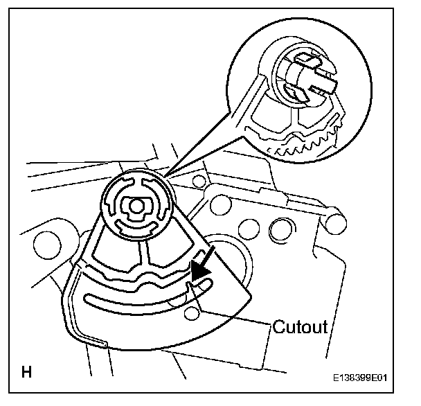 c. Set the lever so that the cutout part engages with tooth of the gear, and then attach the 3 claws to install the lever.