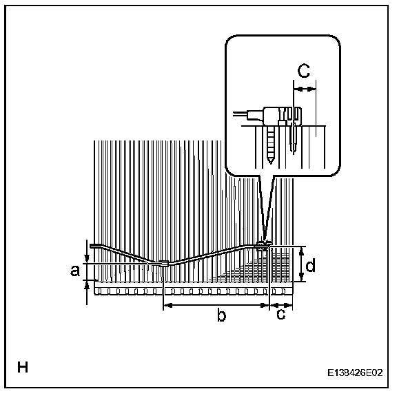 NOTE: If reusing the evaporator, do not insert the sensor into a location where the sensor was previously inserted. Insert the sensor within range C shown in the illustration.