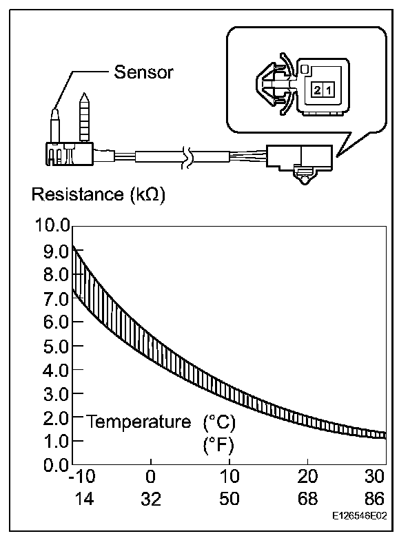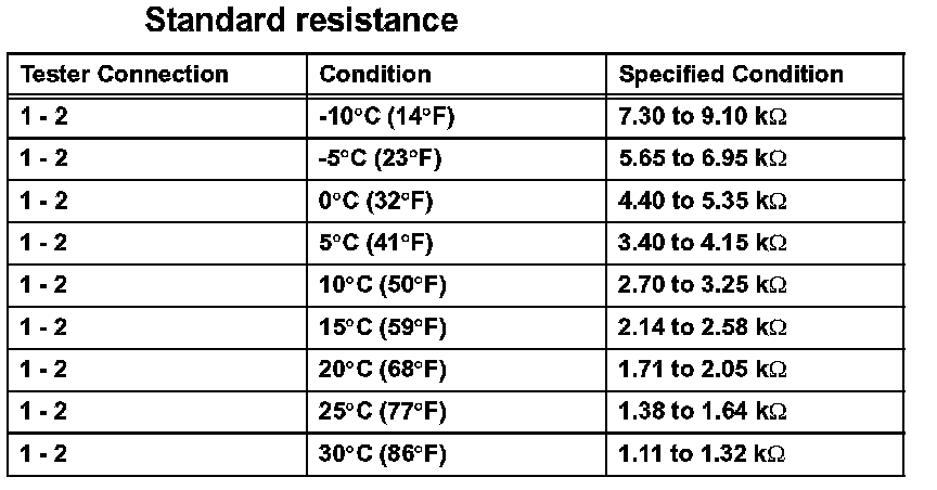 HINT: As the temperature increases, the resistance decreases (see the graph). If the resistance value is not as specified, replace the sensor.