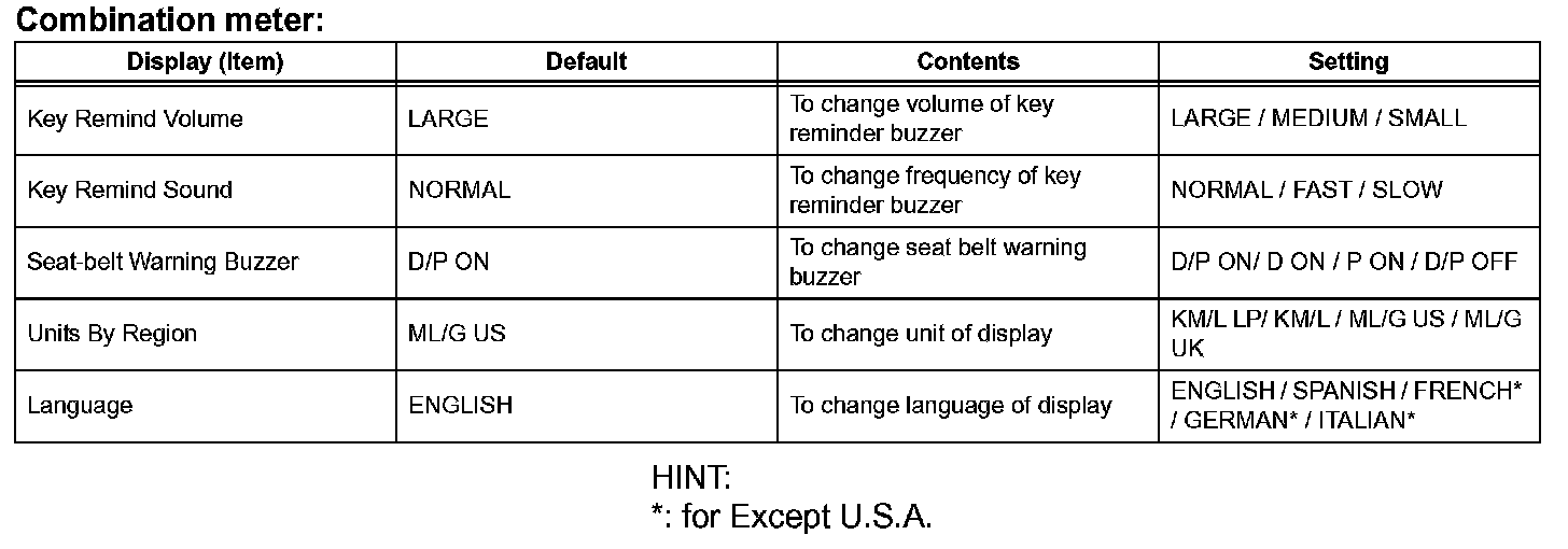 CUSTOMIZE PARAMETERS1. CUSTOMIZING FUNCTION WITH INTELLIGENT TESTER OR TECHSTREAM (REFERENCE)