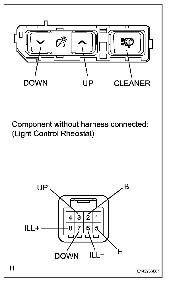 2. INSPECT LIGHT CONTROL RHEOSTAT (w/ Headlight Cleaner System)