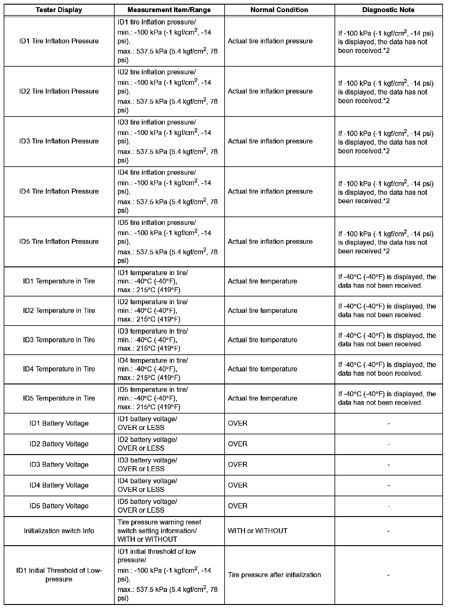 *2: It may take about 2 or 3 minutes until the values are displayed. If the values are not displayed after a few minutes, perform troubleshooting according to the inspection procedure for DTCs C2121/21 to C2125/25. C2121