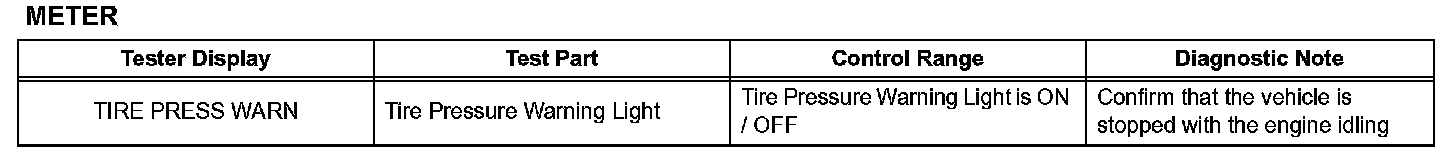 (1) Intelligent tester - Select: DIAGNOSIS / OBD/ MOBD / CHASSIS / TIRE PRESSURE / DATA LIST /