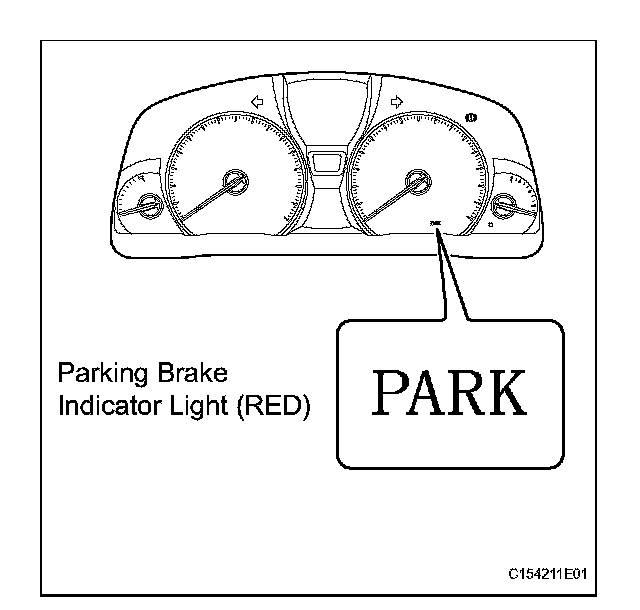 HINT: The parking brake indicator light (RED) will blink at 0.25 second intervals.