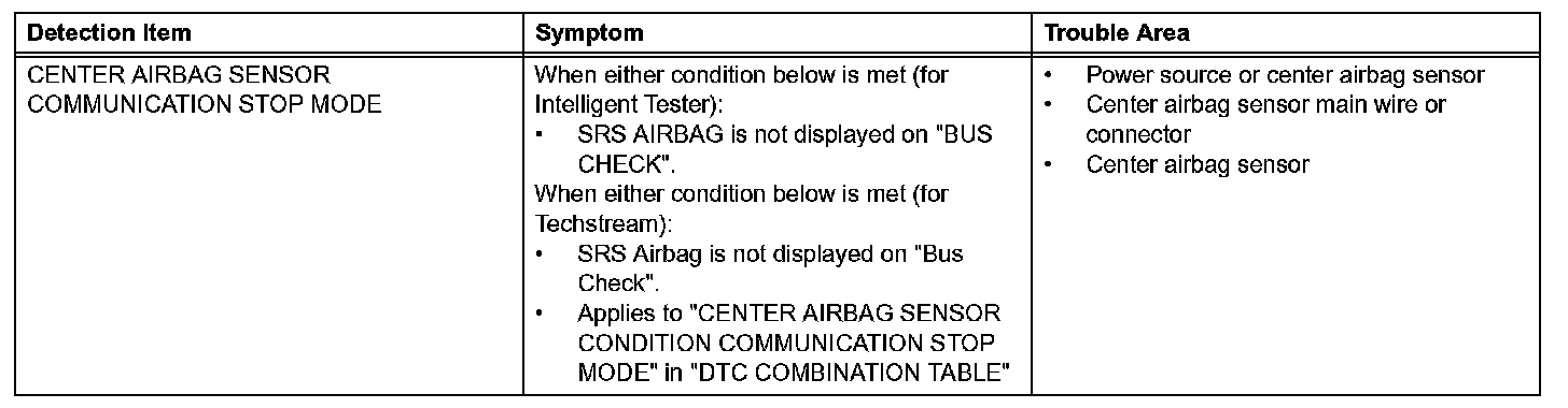 Center Airbag Sensor Communication Stop ModeDESCRIPTION