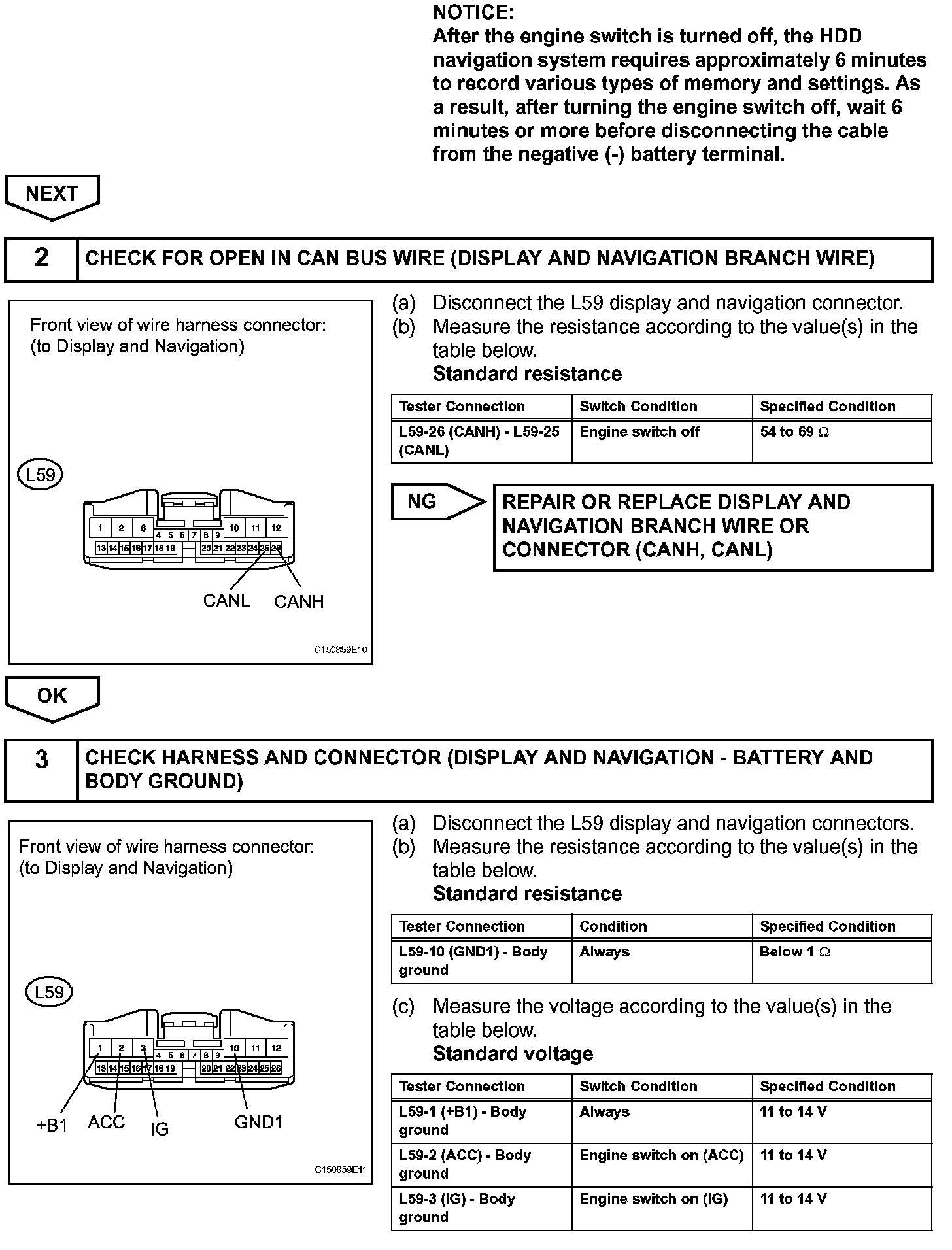HINT: Operating the engine switch, any switches or any doors triggers related ECU and sensor communication with the CAN, which causes resistance variation.