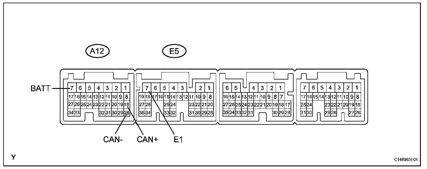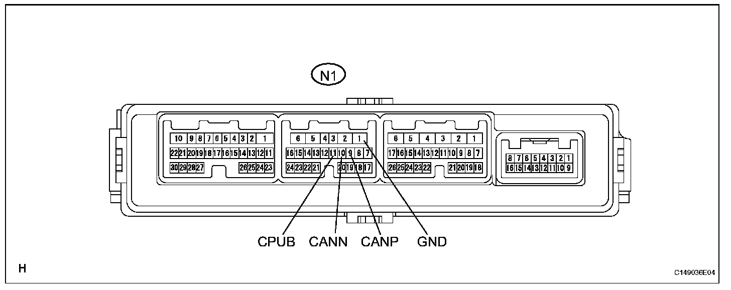 HINT: As there is a spiral cable between the steering pad ECU and the vehicle harness connector, a direct inspection of the steering pad ECU side of the vehicle harness connector cannot be performed.