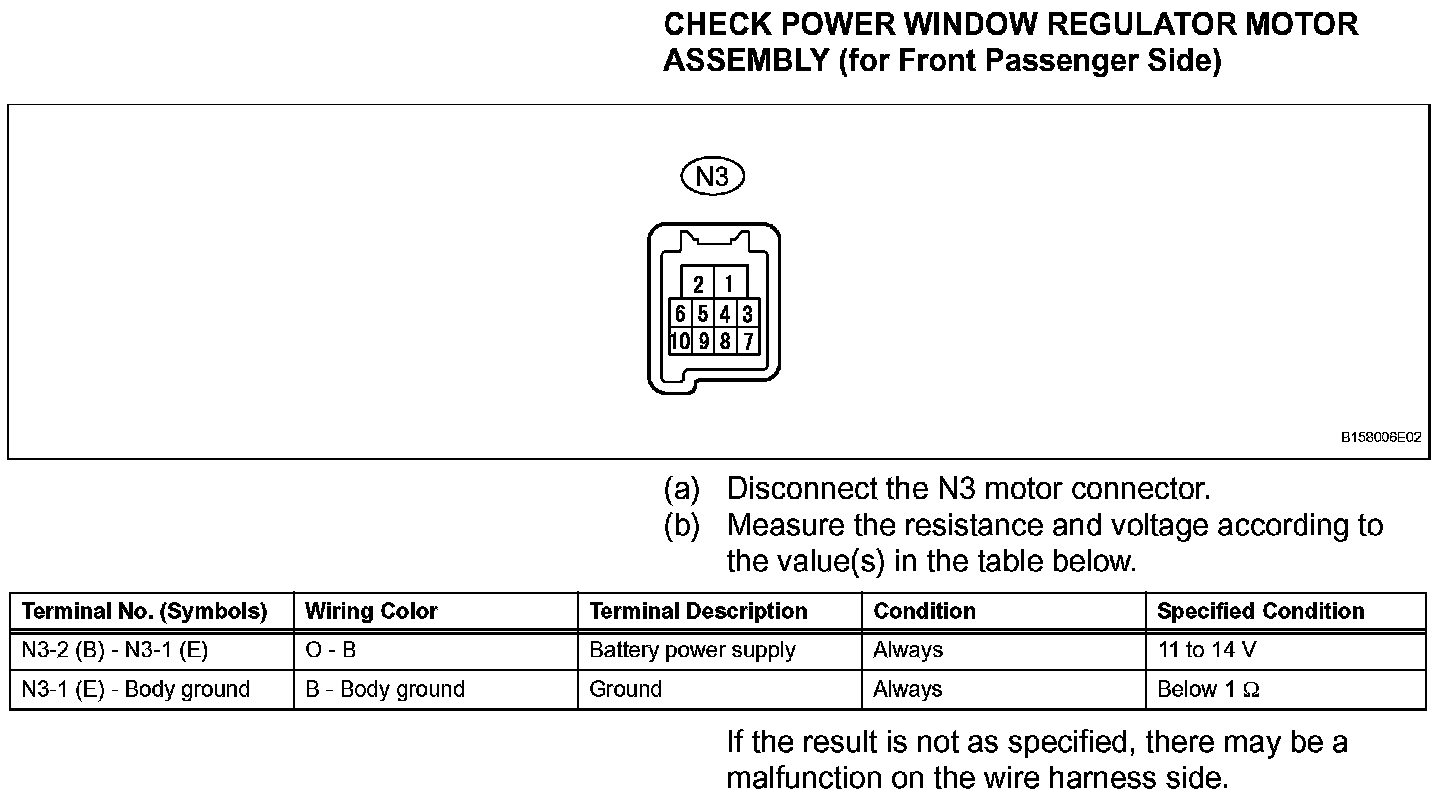 Terminals Of Control Module/Pinouts - Check Power Window Regulator Motor Assembly (for Front Passenger Side):