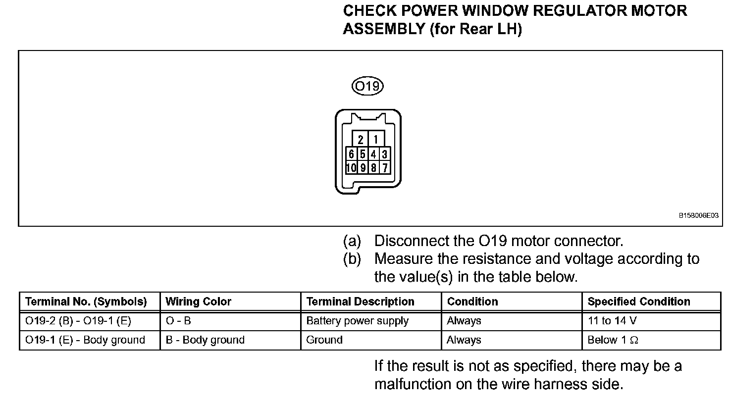 Terminals Of Control Module/Pinouts - Check Power Window Regulator Motor Assembly (for Rear LH):