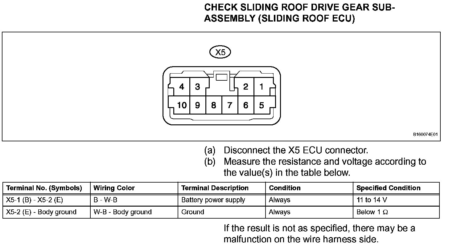Terminals Of Control Module/Pinouts - Check Sliding Roof Drive Gear Sub-assembly (Sliding Roof ECU):