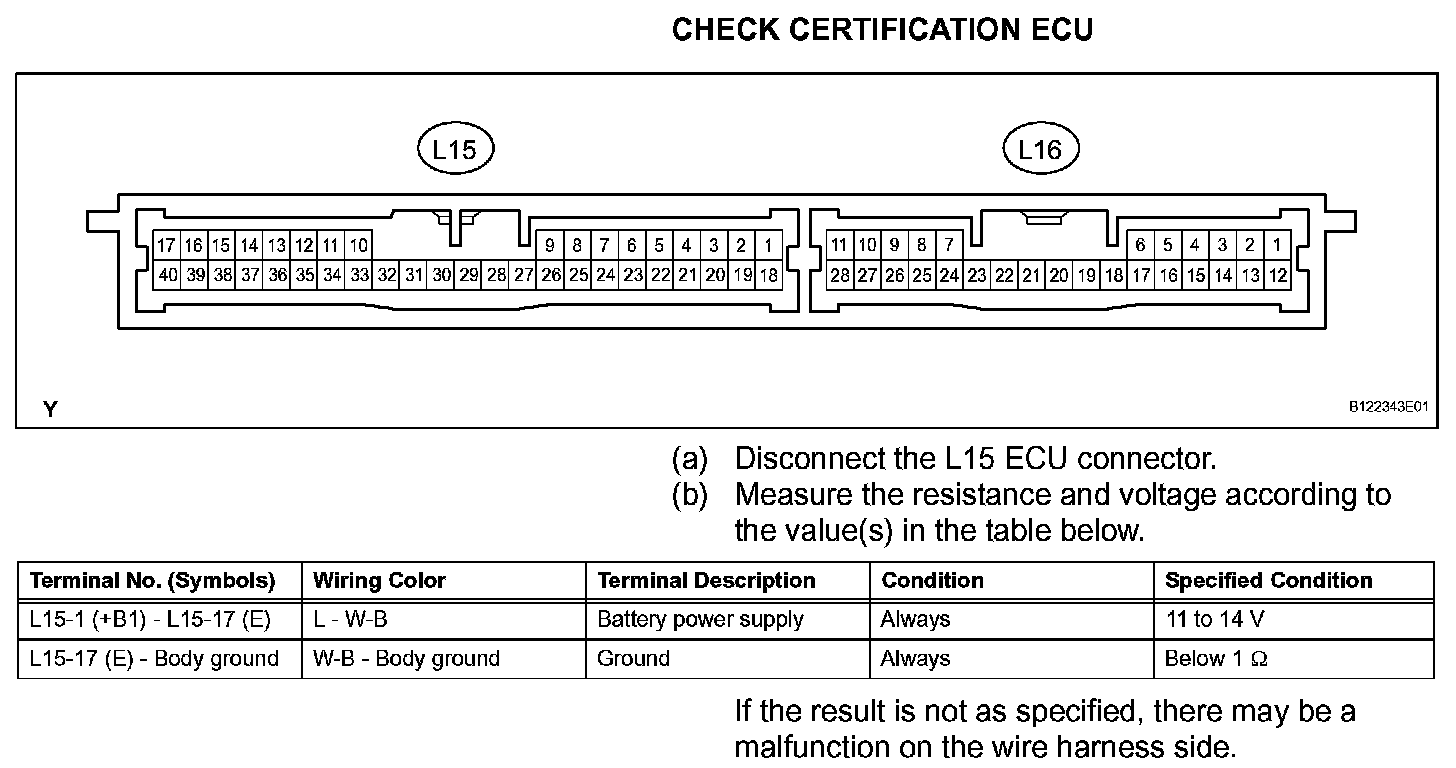 Terminals Of Control Module/Pinouts - Check Certification ECU: