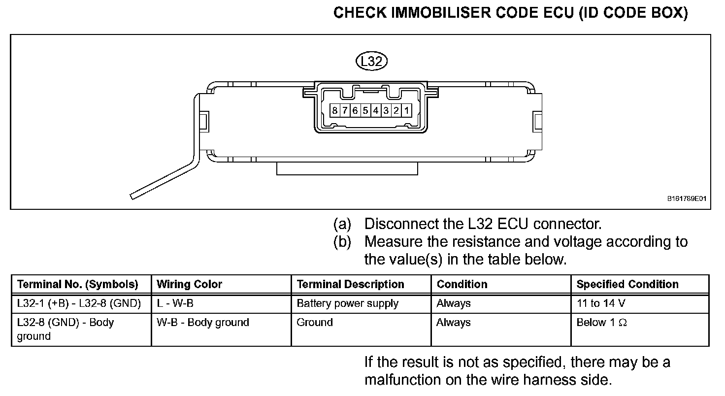 Terminals Of Control Module/Pinouts - Check Immobolizer Code ECU (ID Code Box):