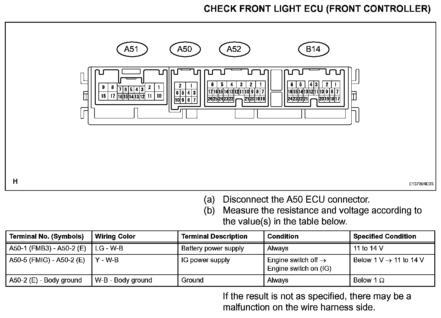 Terminals Of Control Module/Pinouts - Check Front Light ECU(Front Controller):