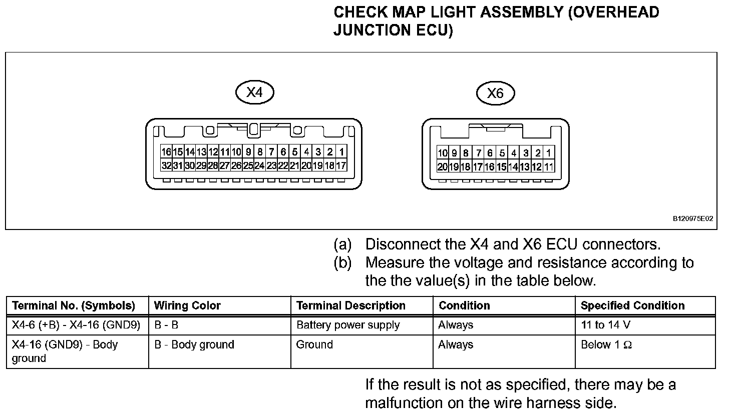 Terminals Of Control Module/Pinouts - Check Map Light Assembly (Overhead Junction ECU):