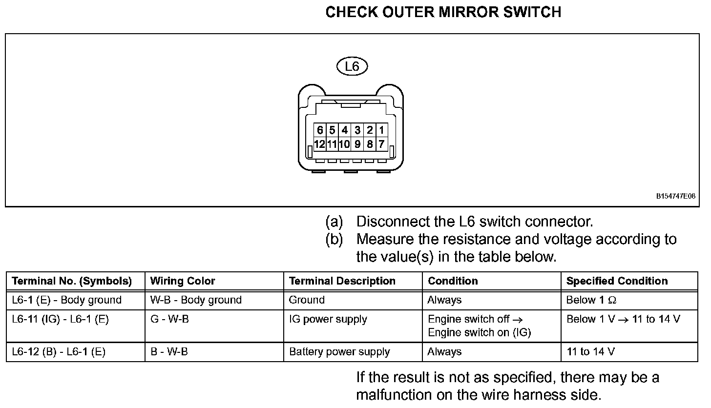 Terminals Of Control Module/Pinouts - Check Outer Mirror Switch: