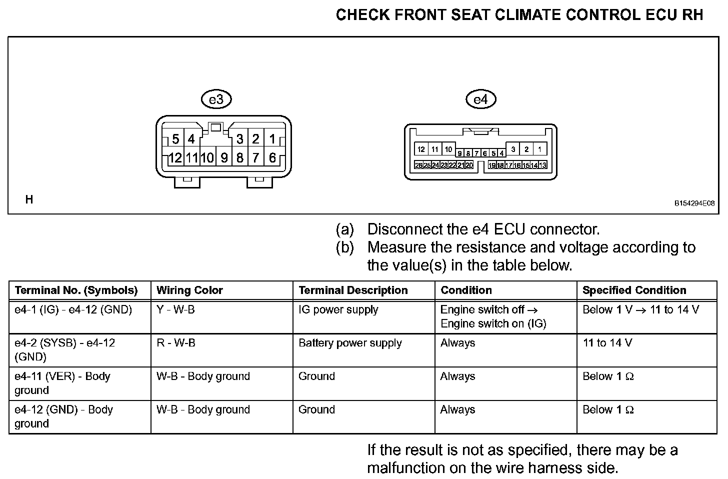 Terminals Of Control Module/Pinouts - Check Front Seat Climate Control ECU RH: