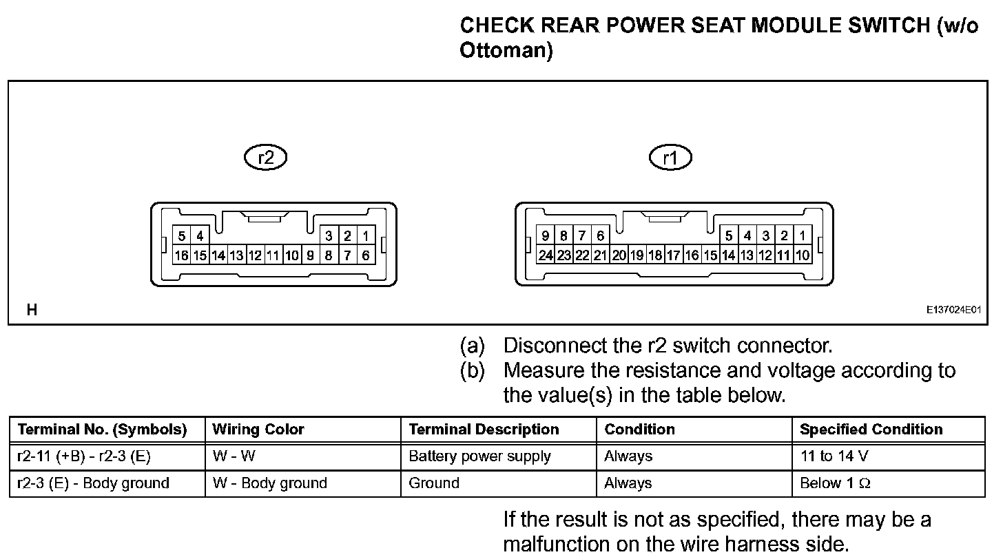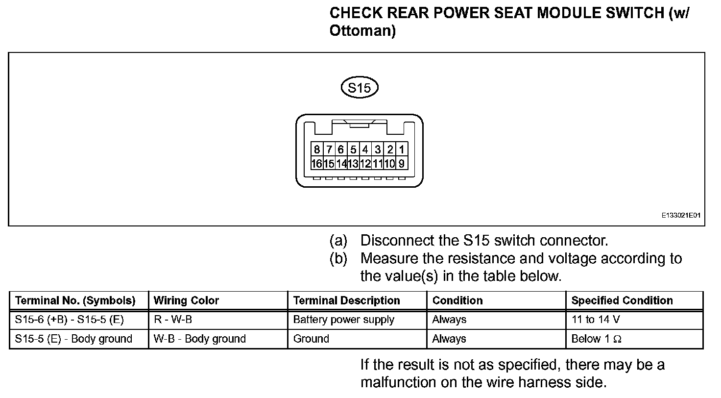 Terminals Of Control Module/Pinouts - Check Rear Power Seat Module Switch (w/Ottoman):