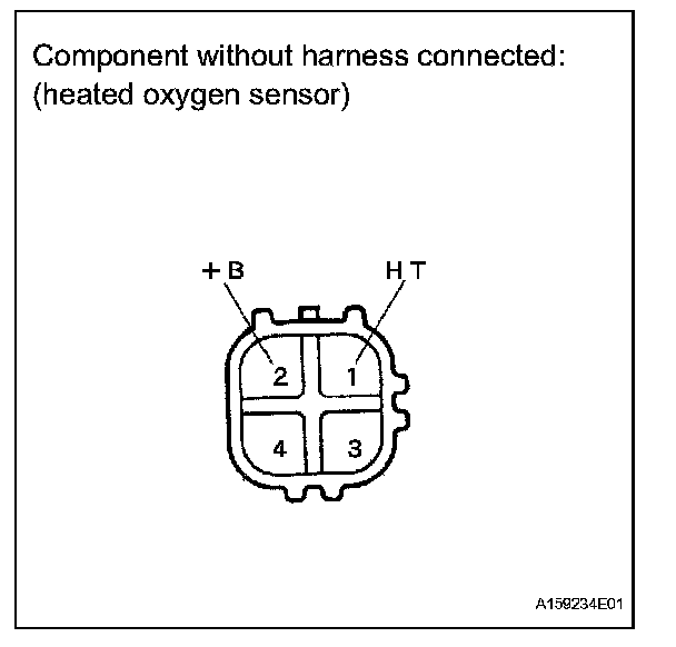 b. Measure the heater resistance between terminals 1 (HT) and 2 (+B) of the sensor.
