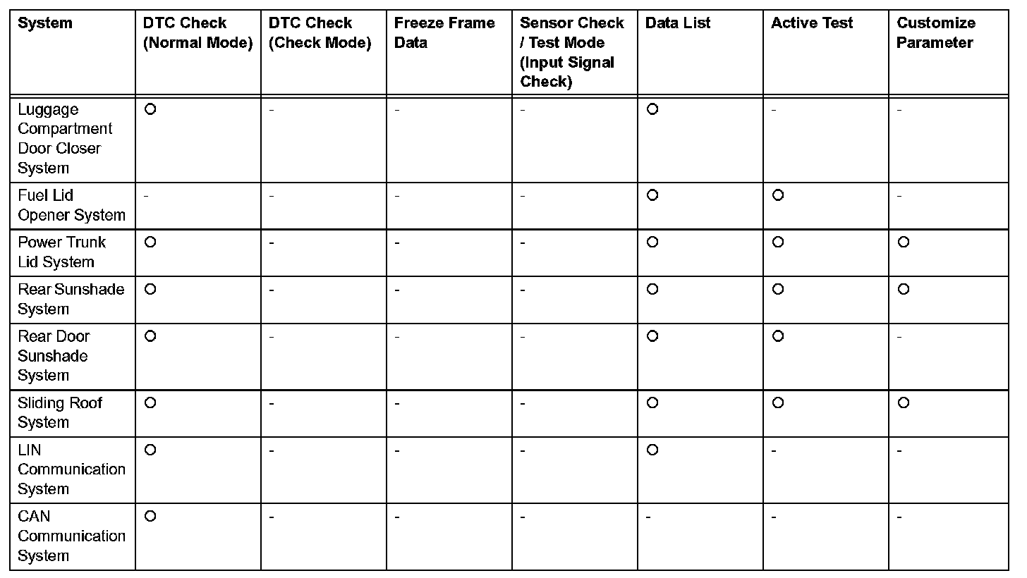 - Another function is the Input Signal Check, which checks if the signals from various switches are sent to the ECU correctly.