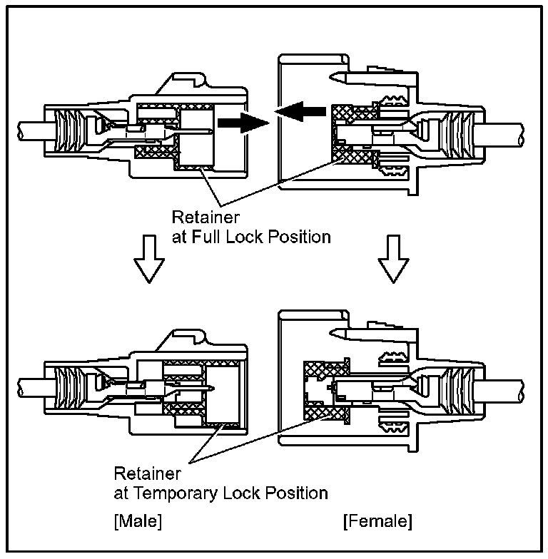 NOTE: Do not remove the terminal retainer from connector body.