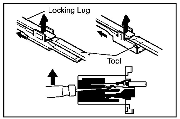 a. Locking device must be disengaged before the terminal locking clip can be released and the terminal removed from the connector.