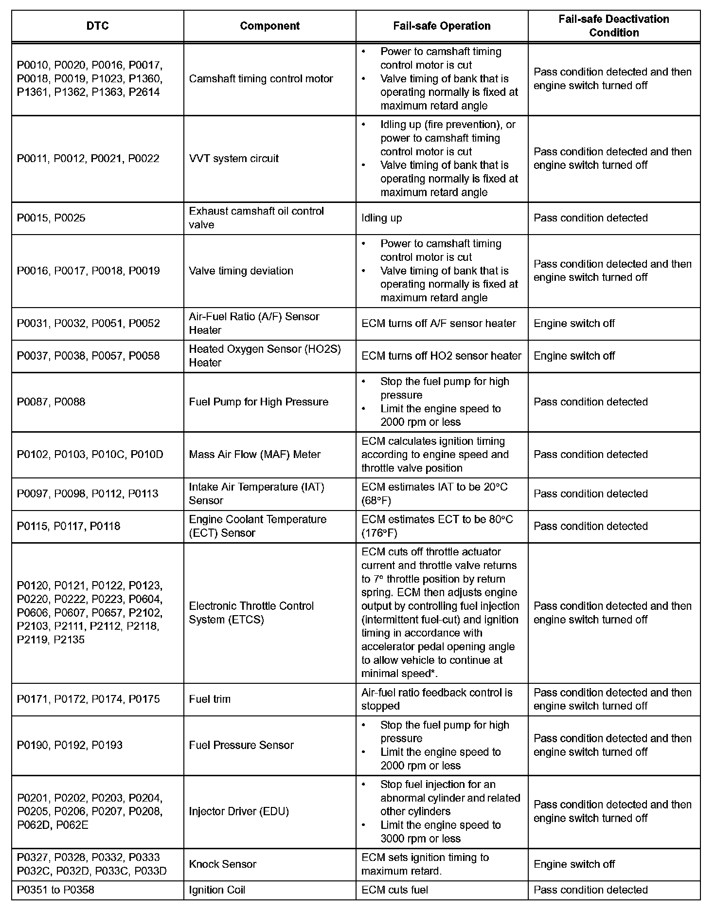 If any of the following DTCs are set, the ECM enters fail-safe mode to allow the vehicle to be driven temporarily.