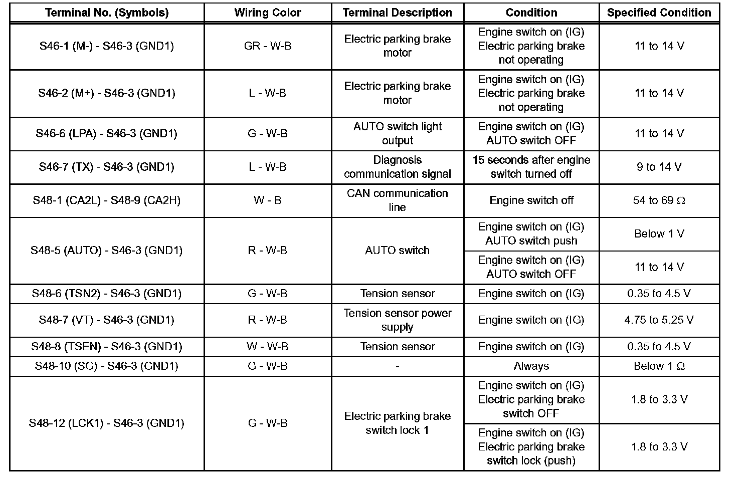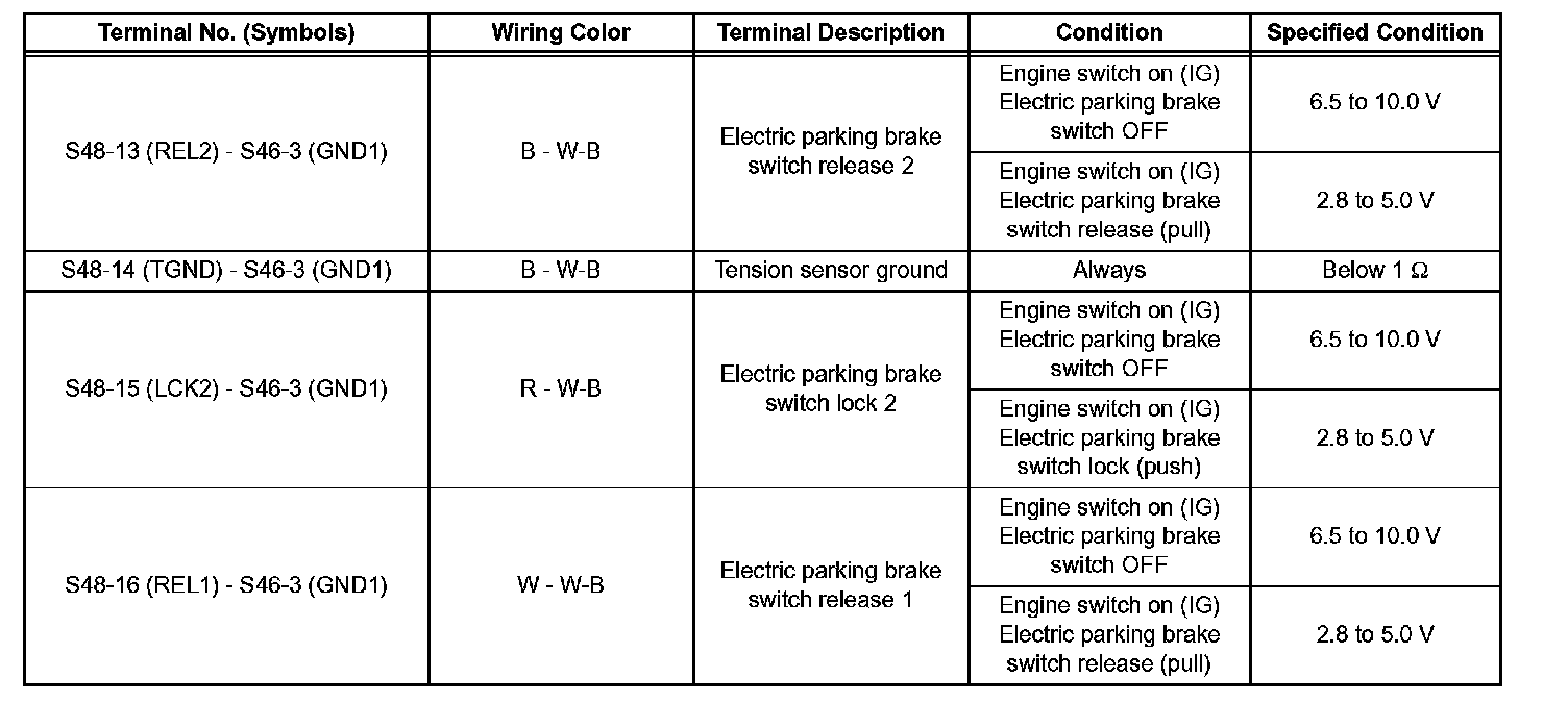 TERMINALS OF ECU1. CHECK ELECTRIC PARKING BRAKE ECU