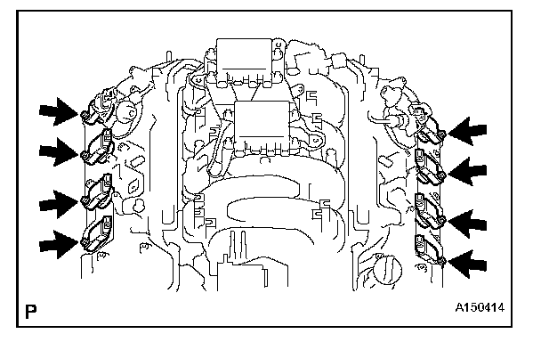 a. Using a 16 mm plug wrench, remove the 8 spark plugs.