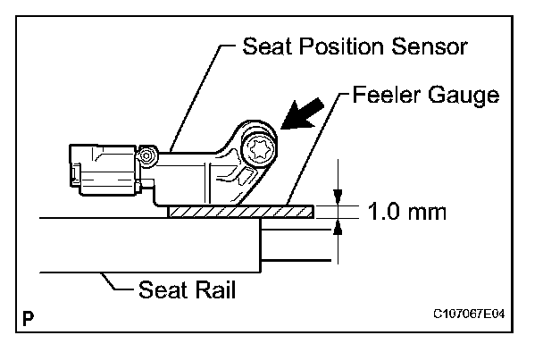 c. Using a feeler gauge 1.0 mm (0.039 in.), install the seat position sensor.