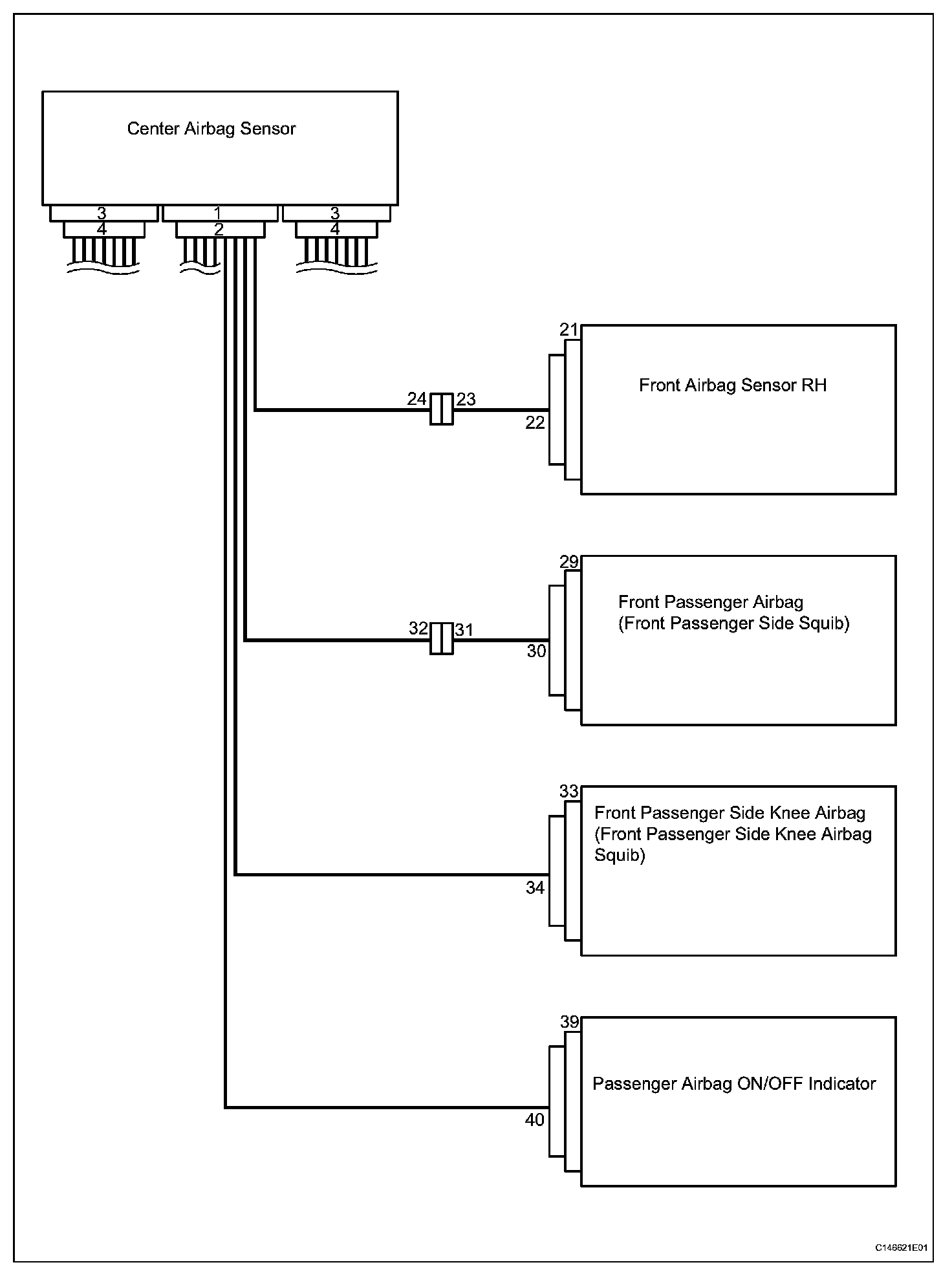 b. When connecting or disconnecting the airbag sensor connectors, ensure that each sensor is installed in the vehicle.