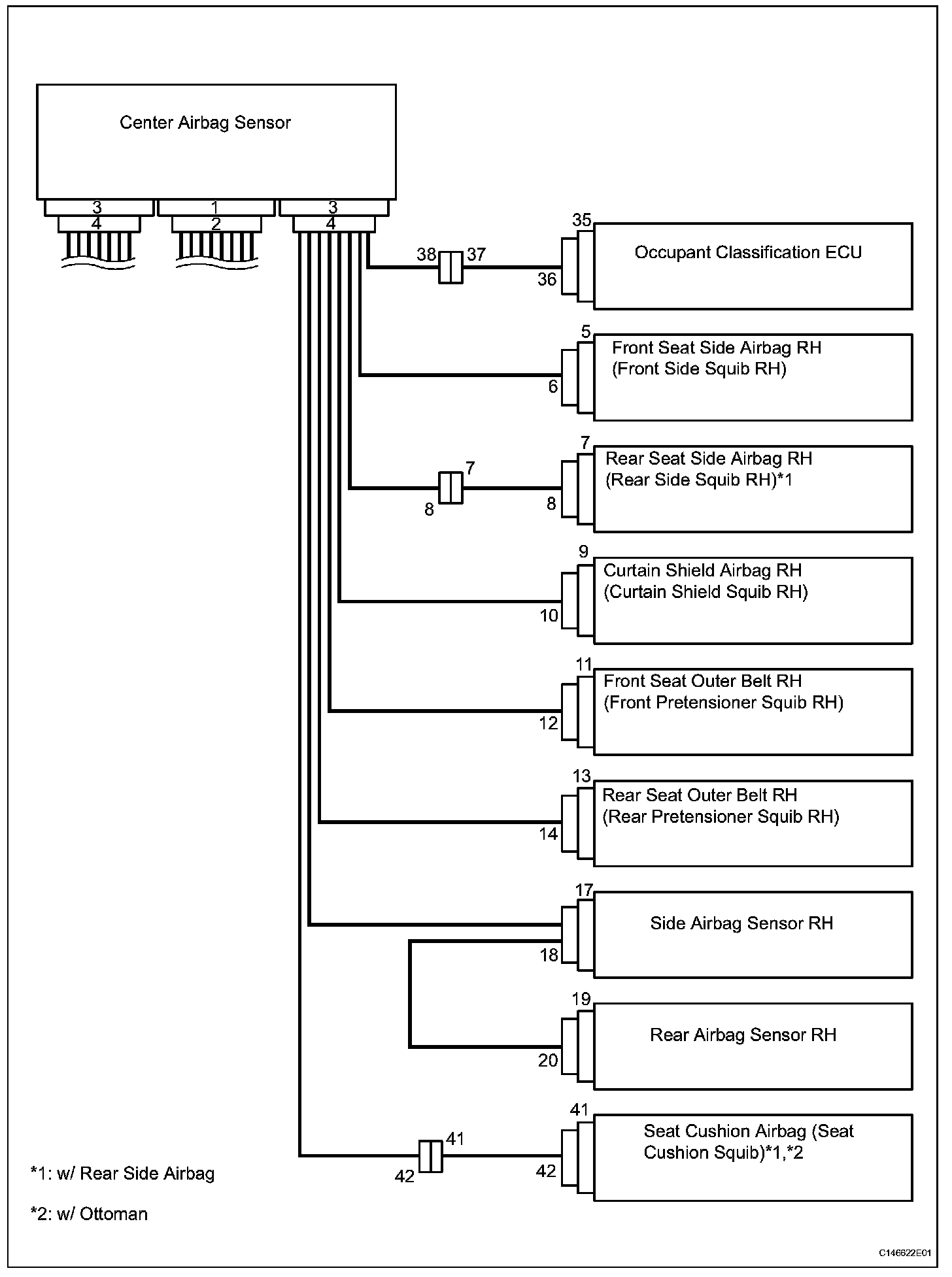 9. CONNECTION OF CONNECTORS FOR FRONT SEAT SIDE AIRBAG AND REAR SEAT SIDE AIRBAG