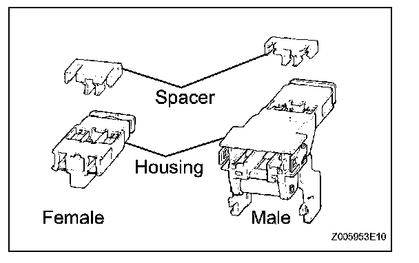 All connectors with a terminal twin-lock mechanism have a two-piece component consisting of a housing and a spacer. This design enables the terminal to be locked securely by two locking devices (the retainer and the lance) to prevent terminals from coming out.