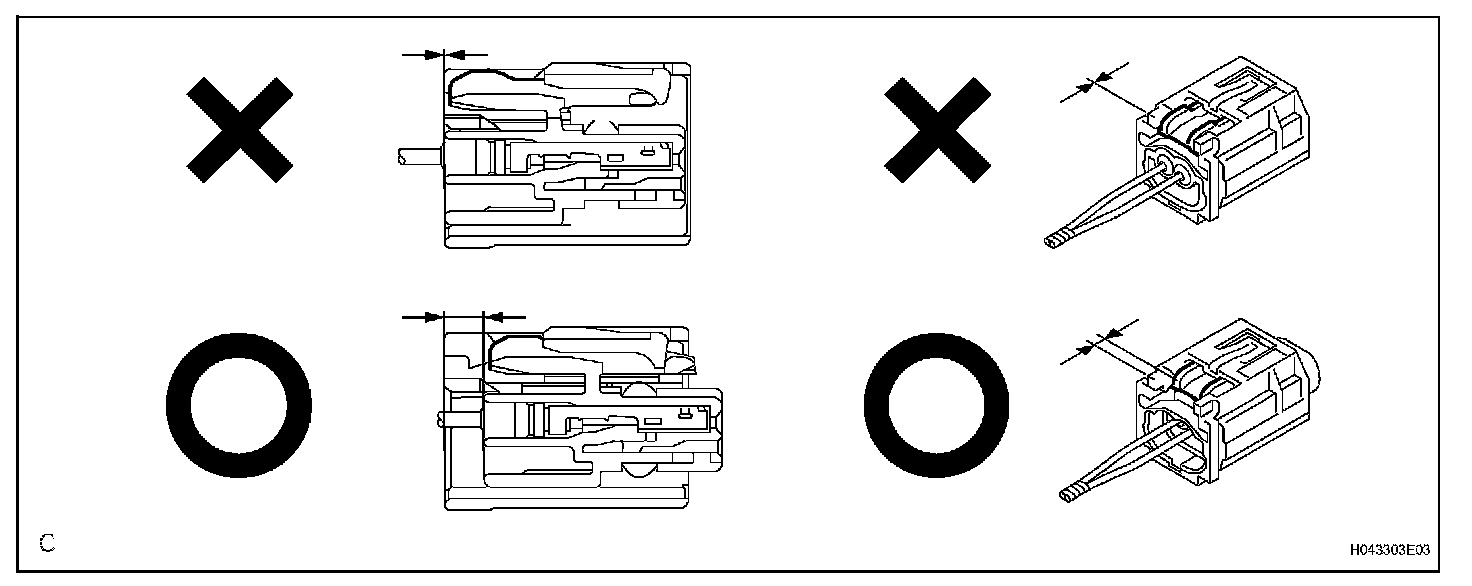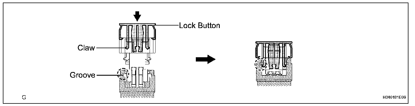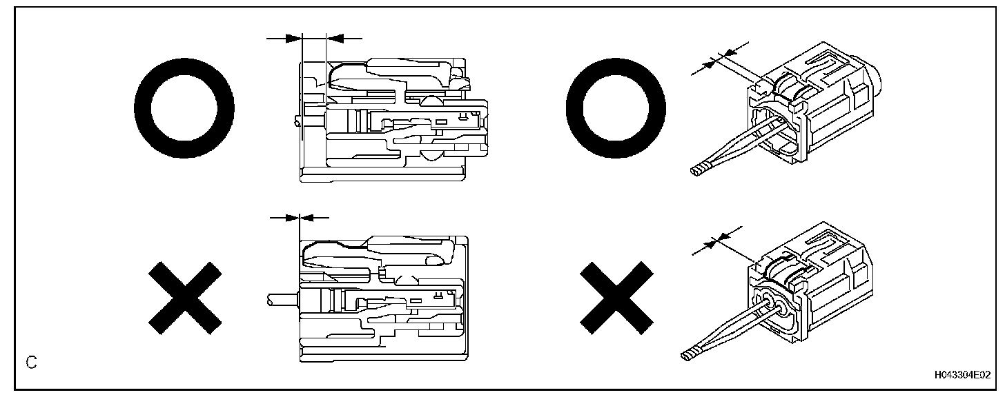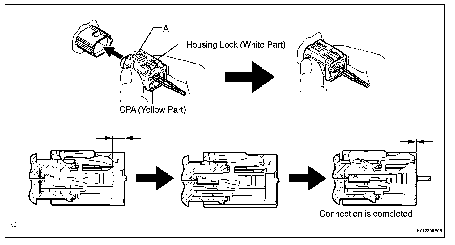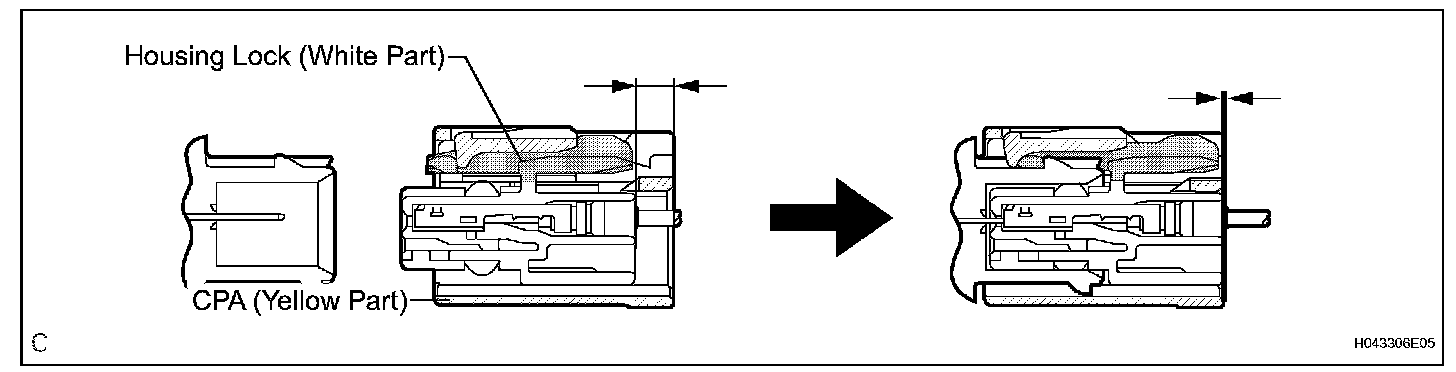 c. After disconnecting the connector, check that the position of the housing lock (white part) is as shown in the illustration.