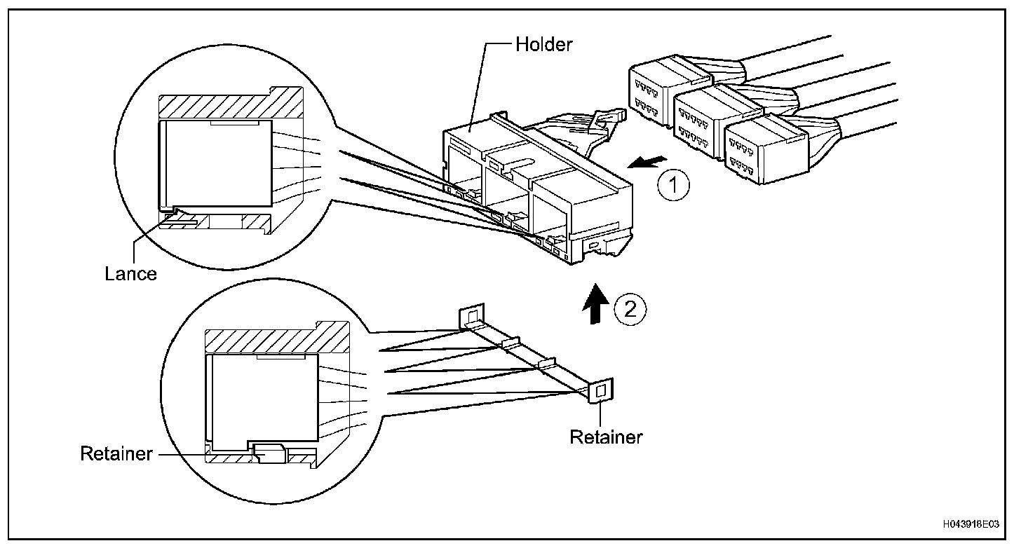 Both the primary lock with holder lances and the secondary lock with retainer prevent the connectors from becoming disconnected.