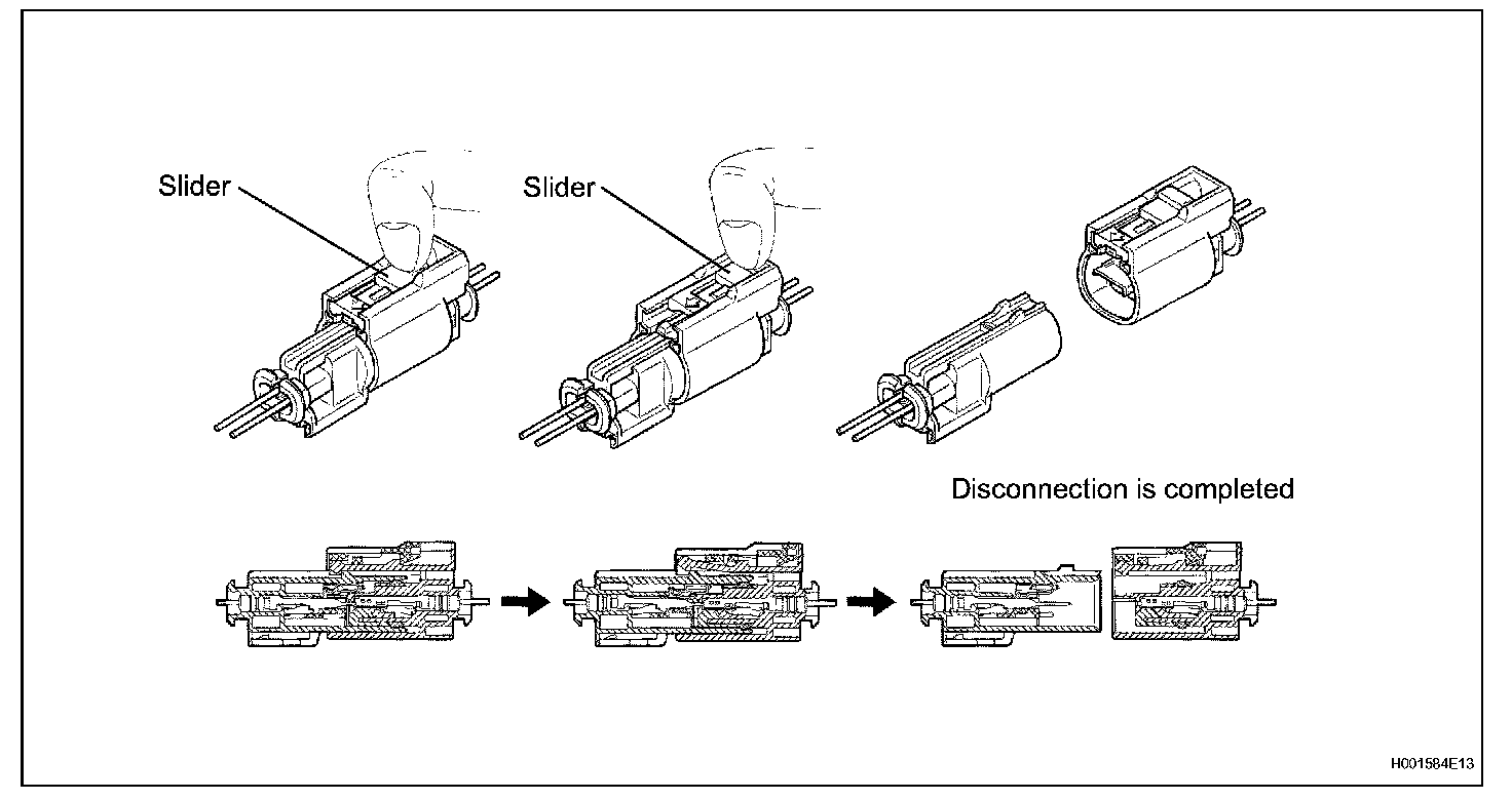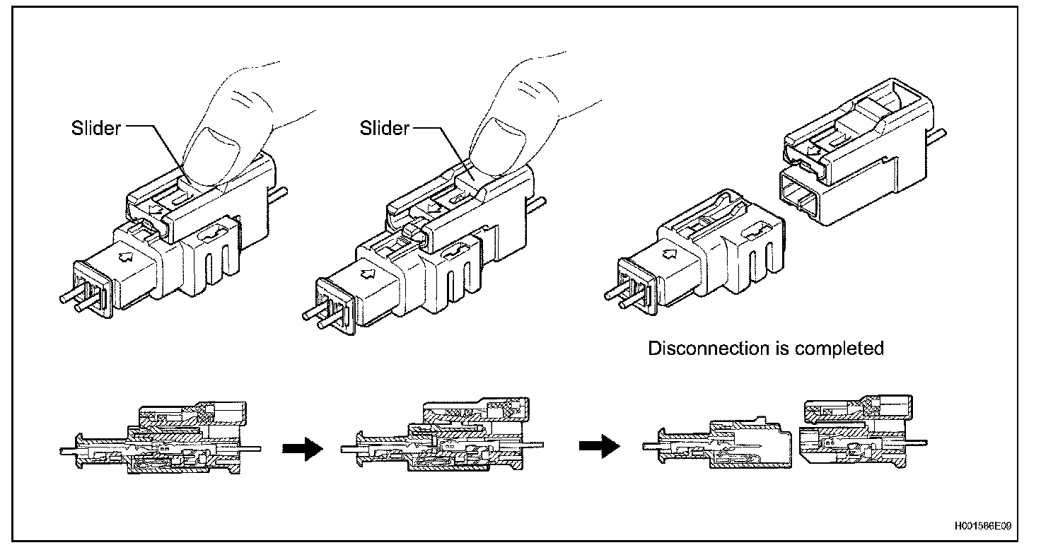 a. Connect the connector as shown in the illustration. (When locking, make sure that the slider returns to its original position and a click sound can be heard.)