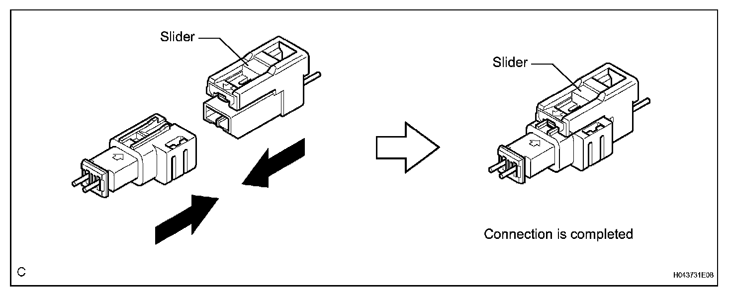 a. Connect the connector as shown in the illustration. (When locking, make sure that the slider returns to its original position and click sounds can be heard.)