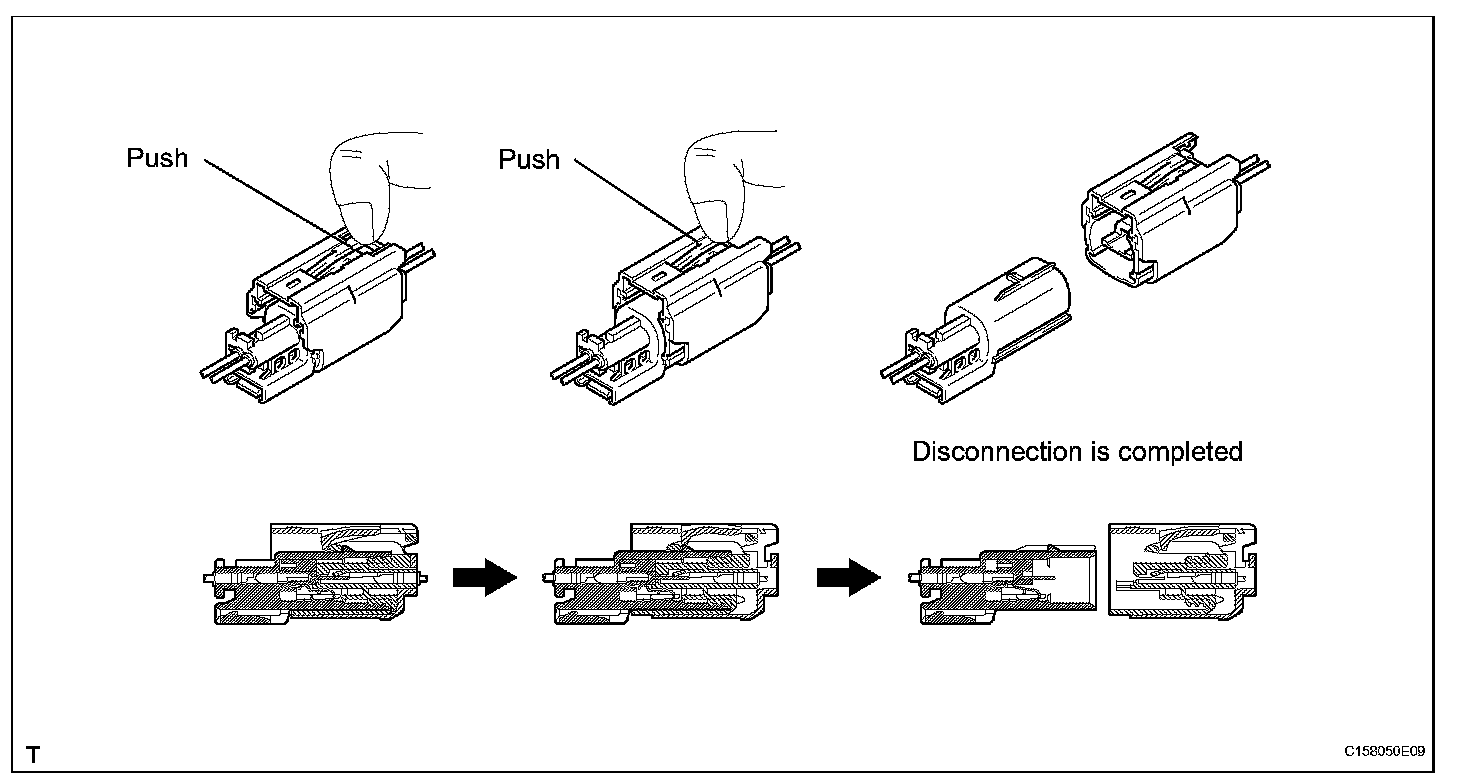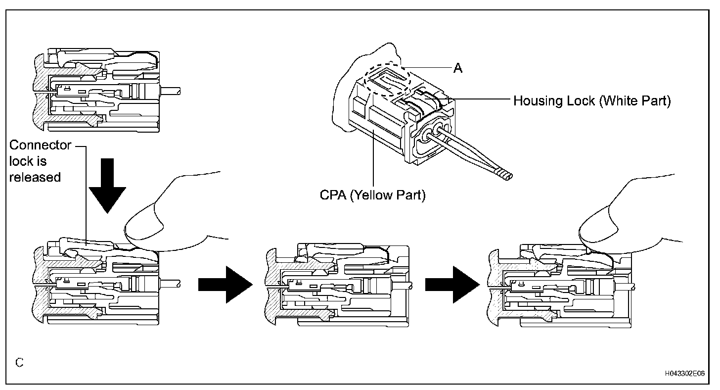 HINT: Do not push down the A part shown in the illustration when disconnecting.