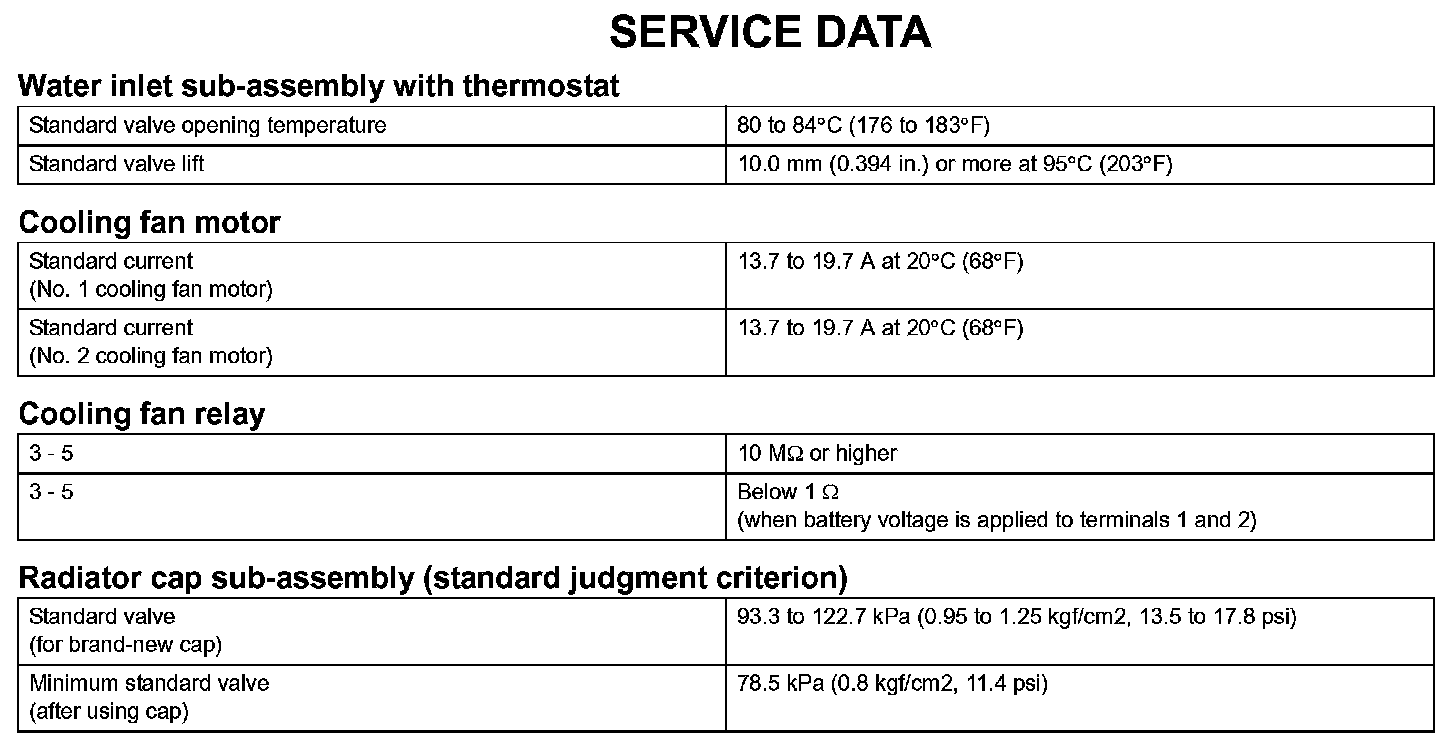 Cooling - Service Data: