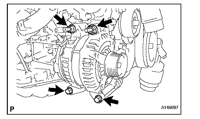 b. Install the generator with the 2 bolts and 2 nuts.