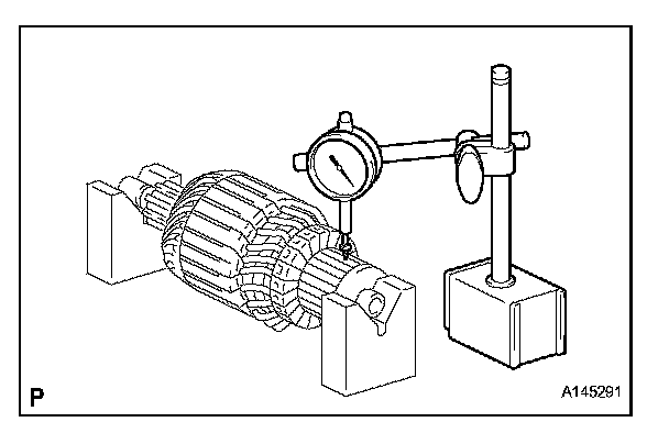 d. Using a dial indicator, measure the commutator's runout.